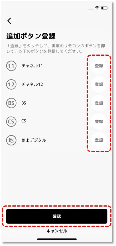 読み込みに成功すると 登録済み と表示されるので、他に追加登録したいボタンが無ければ 確認 をタップします